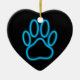 Blue Neon Dog Paw Print Ceramic Tree Decoration