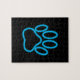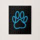 Blue Neon Dog Paw Print Jigsaw Puzzle
