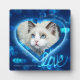 Blue Neon Hearts & Love, Custom Pet Photo - Square Plaque