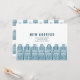Retro style city with cartoon city buildings in blue for a very exclusive new address announcement.