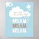 This cute clouds and stars illustration on a blue background is perfect for a nursery or kids' bedroom. It features a hand-drawn "DREAM DREAM DREAM" type design. This print is part of a set. Find coordinating items in my store under the "Collections" tab: Blue Nursery Décor