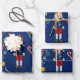 Blue Nutcracker Wrapping Paper Flat Sheet Set of 3.