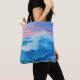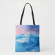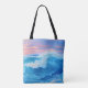 Blue breakers roll towards a beach, as the sun sets in colours of pink and lavender. This is the perfect tote bag for anyone who loves the beach or the ocean.