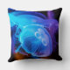 Blue ocean glowing jellyfish throw pillow