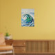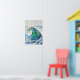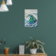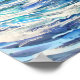 traditional watercolor painting of a blue and turquoise ocean wave with lots of foam somewhere in the ocean as a decorative poster print