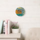 Blue Ocean Waves Nautilus Seashell Pattern Nouveau Round Clock