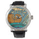 Blue Ocean Waves Nautilus Seashell Pattern Nouveau Watch