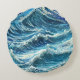 Blue Ocean Waves Round Cushion
