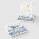 The coasters are gorgeous, a quality feel and heavy weight. They look like a precious archeological find. A rustic stone juxtaposed with a modern floral black and white print. I like the way the print goes slightly imperfect on the cut stone edges giving them a kind-of natural beauty.