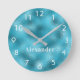 An ocean blue faux background. Personalise and add your name, white letters. White clock face numbers.