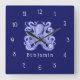 Blue Octopus Nautical Coastal Beach House Name Square Wall Clock