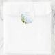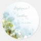 This stylish vintage chic wedding round sticker has a soft faded blue background with some birds flying around. On the left, there is a beautiful soft blue, white, and olive green foliage leaves design. At the top, you can easily customise this with the names of the bride and groom along with the date of your wedding ceremony. These warm colours would be great for a fall or winter wedding, but could be used anytime of the year!