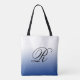 Blue Ombre Over Any Colour with Monogram Tote Bag