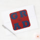 GRAD in bold dark red letters fills the corners of these blue background grad square stickers. Congratulations above the name of your graduate and the Class of below. SEE ENTIRE COLLECTION of pre-done colour combinations, invitations, paper plates, napkins, signs and more in our store.