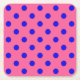 Blue On Pink Polka Dots Pattern Design Square Paper Coaster