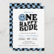 Blue One Happy Dude Preppy Smile Boy 1st Birthday Invitation