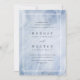 Modern and chic wedding invitation inspired by opal gemstones features a pastel blue watercolor background with a white double border and your wedding details in elegant off-black lettering.