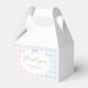 Complete your party favours with this “Blue or Pink?” gender reveal favour box label, designed with a classic gingham bow pattern for a sweet finishing touch.