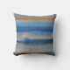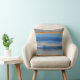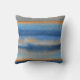 Pillow printed with original abstract stripe watercolor painting in colourful shades of blue and orange.
