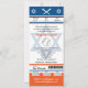 Navy Blue, Orange and White Baseball Ticket with the Star of David for your Bar Mitzvah Invitation. Baseball Bats and Baseball artwork on the design. For enquiries about custom design changes by the independent designer please email paula@labellarue.com BEFORE you customise or place an order.