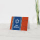 Basketball themed Bar Mitzvah thank you folded card with a basketball background and blue accents. This basketball Bar Mitzvah thank you card is stylish and modern. This basketball themed Bar Mitzvah folded thank you card features an orange basketball texture background with blue jersey look background for the name and star of David. The colours on this basketball themed Bar Mitzvah design are orange, blue, white and black. Your son's name is in a bold font.
