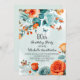 80th birthday party invitation with beautiful blue and orange flowers and butterflies. Contact me for assistance with your customisations or to request additional matching or coordinating Zazzle products for your celebration.