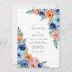 Blue Orange Floral Whimsical Wedding Invitation