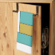 This fabulous mid-century modern kitchen towel features rectangular colour blocks in aqua blue, gold, orange, white, and black. Add a pop of fun to your kitchen!