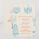 Blue Orange Hand Drawn Whimsical QR Code Wedding Invitation