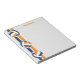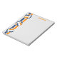 This volleyball themed notepad features 3 team color volleyballs with blue, orange and white panels overlying vertically oriented blue and orange varsity stripes on the left edge - coach's name is customizable - by katz_d_zynes