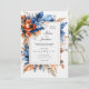 Blue Orange Terracotta Floral Boho Elegant Wedding Invitation