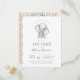 This baby boy baby shower invitation features a hand painted watercolor elephant and modern typography. These cards reverse to an orange and blue tribal pattern. These invites are perfect for any jungle themed baby shower!