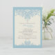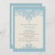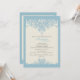 A beautiful blue and cream invitation featuring elegant scrolls and a cross which can be dragged to any location, made larger or smaller (+-) or eliminated making this a versatile invitation. Well-suited for baptisms, christenings, first holy communions and more.