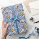 Blue Ornate Floral Fruity Berries Sicilian Tiles Wrapping Paper