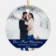 Blue Our First Christmas Couple Photo Ceramic Ornament