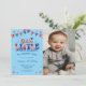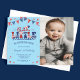 Blue Our Little Firecracker 1st Birthday Photo Invitation