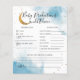 Fun over the moon theme boy baby shower baby predictions and advice card featuring a watercolor art of blue sky with faux gold shiny moon. The texts are editable. Perfect game to play during the shower and will definitely be a great keepsake! The card asks guests to predict what the baby would look like.