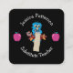 Square black business cards for educators , featuring a blue owl and some apples . Personalised them with your name , job title , availability schedule , contact phone number and email address , so potential employers can easily reach you .
