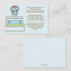 A cute little blue owl perches atop a stack of blue and green books on a soft baby blue background in this fun book request wishing well card. A charming poem requests that guests bring a book for the baby-to-be to start the new mum off with a library of beloved children's books. Just insert this sweet card inside the baby shower envelope, and your guests will know what's needed to start baby on the path towards reading.