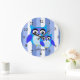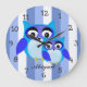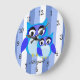 Blue owl children cartoon Illustration with big eyes. This design has different shades of blue and turquoise.