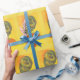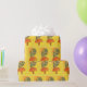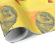painting of a cute fuzzy owl sitting on a big orange mushroom with a yellow background makes this fun wrapping paper.