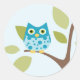 Blue Owl in a Tree Classic Round Sticker