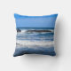 A pillow with a photograph taken on the Oregon Coast of the beautiful blue Pacific Ocean, waves crashing on the sand and jagged rocks. Personalise by adding your name. Perfect for beach lovers.