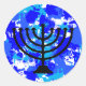 Blue Paint Splatter Menorah Classic Round Sticker