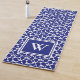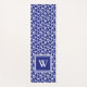 This bold paisley yoga mat showcases a twist on the vintage Persian pattern, with a more minimalist and modern feel. These vivid blue paisley shapes don't have the typical intricate detail of the classic Persian pattern, but instead are solid Paisley teardrop/feather style shapes against crisp white. The result is a clean, fresh, and modern 2-color pattern. The color is not as bright as royal blue but not as dark as navy blue. Your initial monogram appears in white against a block of blue with a double white border. Make sure to type your own initial to replace the placeholder.
