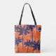 Blue palm silhouette, orange background tote bag