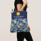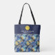 Super cute double-sided tote bag for your pickleball paddle and gear.  Design features a yellow pickleball, two lines of custom text set above a colourful blue, gold, white tropical palm tree leaf pattern.  Get matching ones for your club, team or pickleball trip . . . Makes a nice gift for the pickleball player in your life.