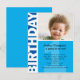 Blue Panel 1st Birthday Invitation Postcard
