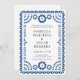 This beautiful papel picado inspired wedding invitation design features an ornate frame in lively blue colour, a classic white background, and modern typography. This elegant yet modern design is a fabulous choice for a Latinx wedding or Mexico destination wedding. You can customise this design even further by adding a photo or additional text to the backer. See more from the collection above...