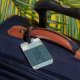 I was happy with the acrylic tag but it came with a thin leather strap to attach the tag to luggage (like a cat collar). I replaced the strap with a metal ring off of a key ring as the leather strap would come undone or break easily as luggage is sometimes handled without much care by airlines. Printing is great. Colours and positioning of the design I put on the tag were perfect. Very pleased.